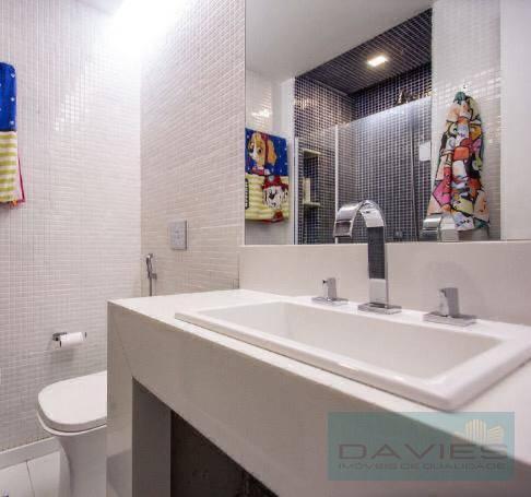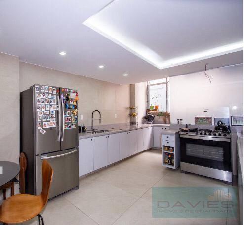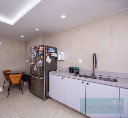 Este imóvel exclusivo possui um amplo salão com dois ambientes, lavabo, três quartos (uma suíte) com armários planejados, cozinha com copa, área de serviço e duas vagas de garagem.
