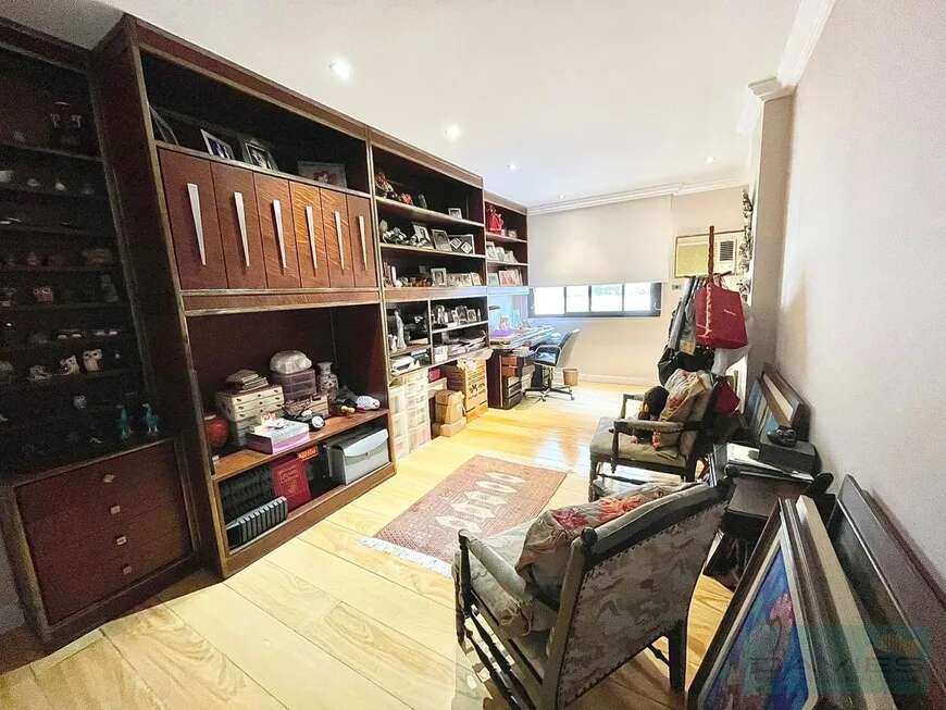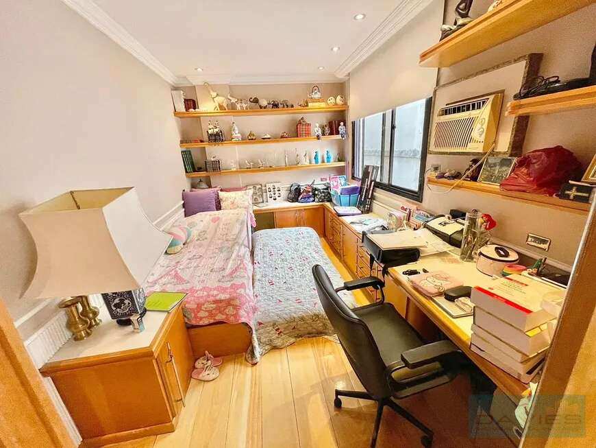 A suíte máster é um verdadeiro refúgio: possui closet, dois banheiros independentes para o casal e ainda um escritório integrado. O apartamento dispõe também de uma aconchegante sala íntima, uma segunda suíte e dois quartos adicionais, garantindo conforto para toda a família.