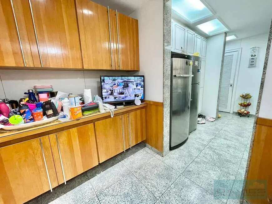 A cozinha, muito espaçosa, possui área exclusiva para refeições e conta com dependência completa de empregada.