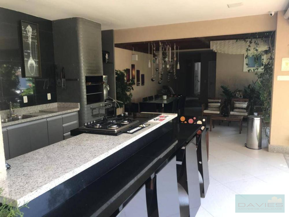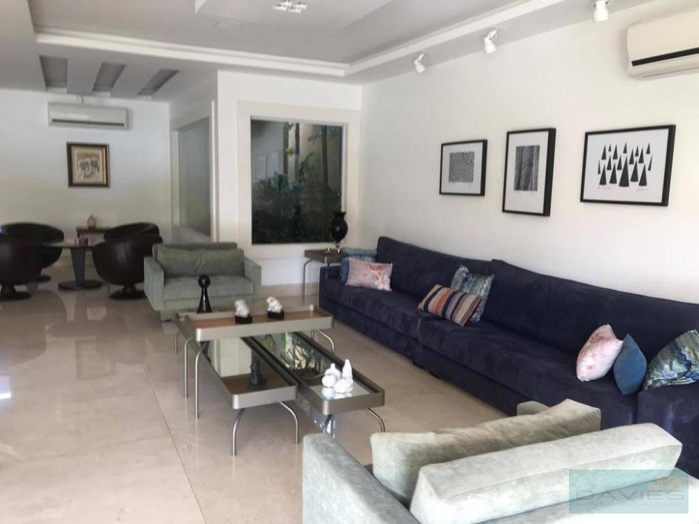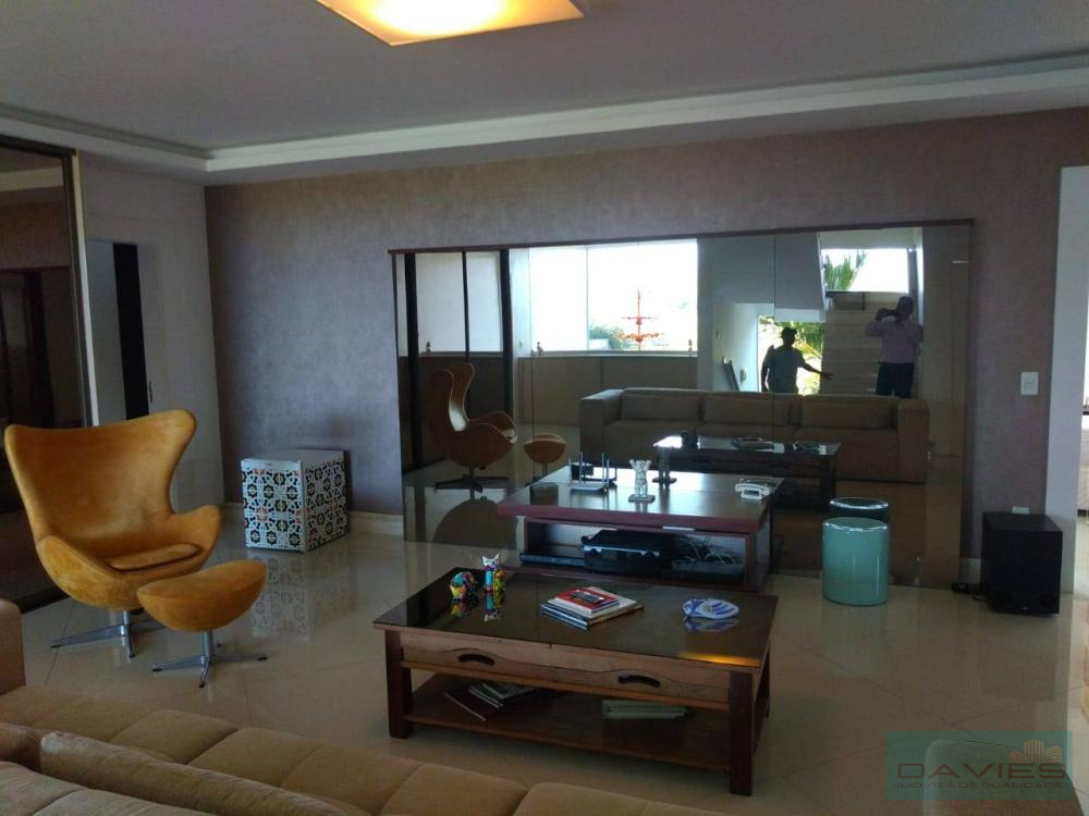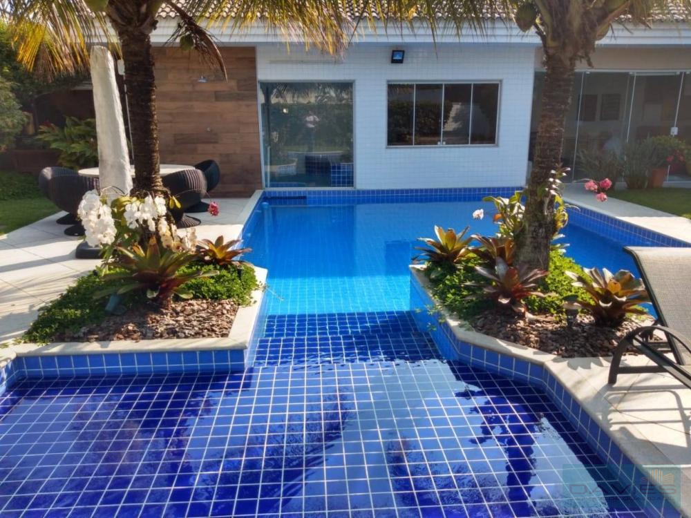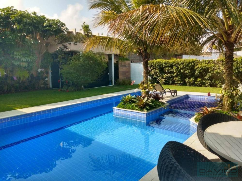 Maravilhosa casa triplex com elevador, em terreno de duna, no condomínio Mansões com infraestrutura e segurança 24 horas, composta de: 1º Pavimento da casa: Ampla sala em vários ambientes, finamente decorada, com projeto em gesso, nichos luminosos, iluminação direta e indireta, jardim de inverno, lavabo e suíte de apoio revertida para escritório. Copa cozinha repleta de armários, duas (2) dependências, despensa e área de serviço. 2º Pavimento da casa: Espaçosa sala íntima, quatro (4) suítes, todas com closet, sendo a master com banheiro duplo, bancada dupla e hidromassagem. 3º Pavimento da casa: Amplo sótão com banheiro completo, copa de apoio, salão de jogos, maleiro, ambiente Home Theater com projetor e isolamento acústico, projeto de iluminação, isolamento térmico, adega para quinhentas (500) garrafas. Lazer nos fundos da casa com espaço gourmet, linda bancada, churrasqueira, forno à lenha, fogão a gás, placa de indução, sala teen com Home Theater, atelier, sala de massagem com ofurô, sauna à vapor com mergulho para piscina com cascata. Casa possui elevador, adega climatizada, automação, poço artesiano com sistema de filtragem de água para toda a casa e lindo paisagismo.
