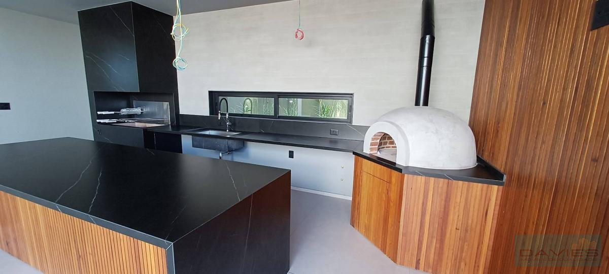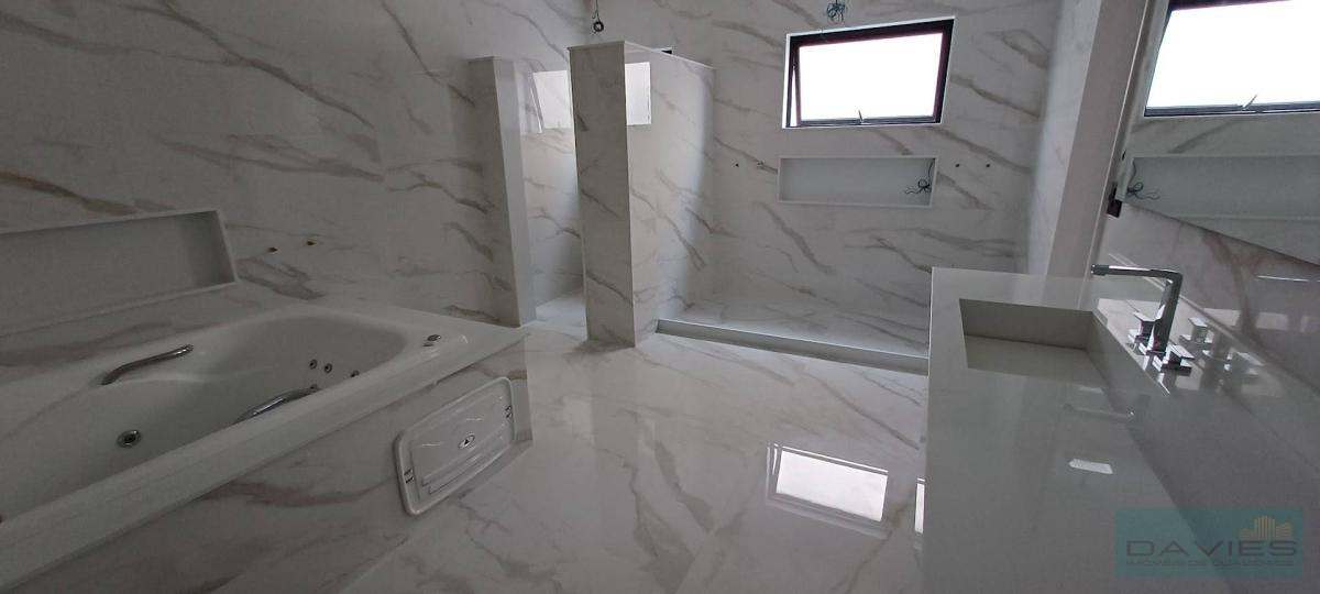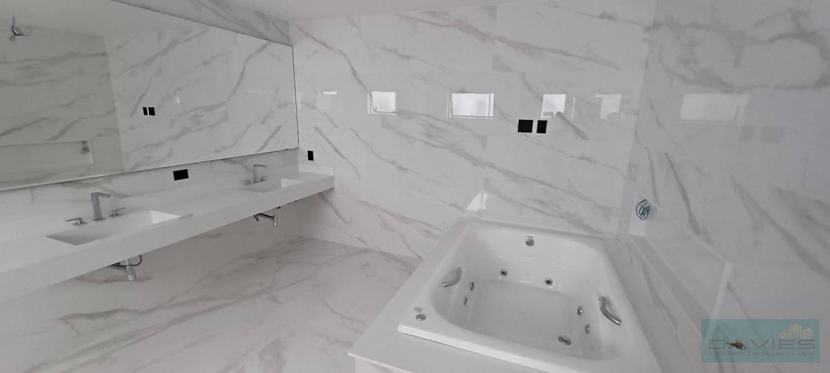 2° pavimento: 4 suítes com closet, piso em porcelanato, sendo a master com vista exuberante para a lagoa, salão de banho com bancada composta por 2 cubas e banheira de hidromassagem.