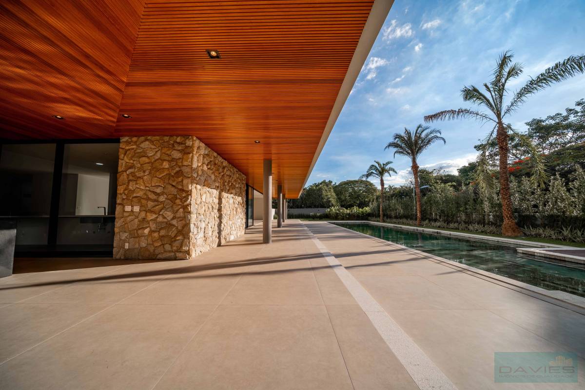 1 Pavimento: Hall de entrada social, sala com pé direito alto em vários ambientes toda integrada a copa cozinha com ilha e a area gourmet, lavabo, suíte reversível podendo ser utilizada como home teather.