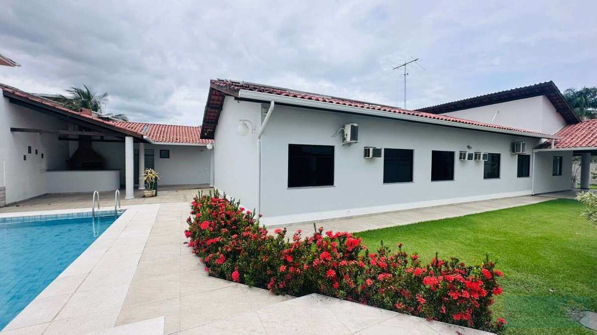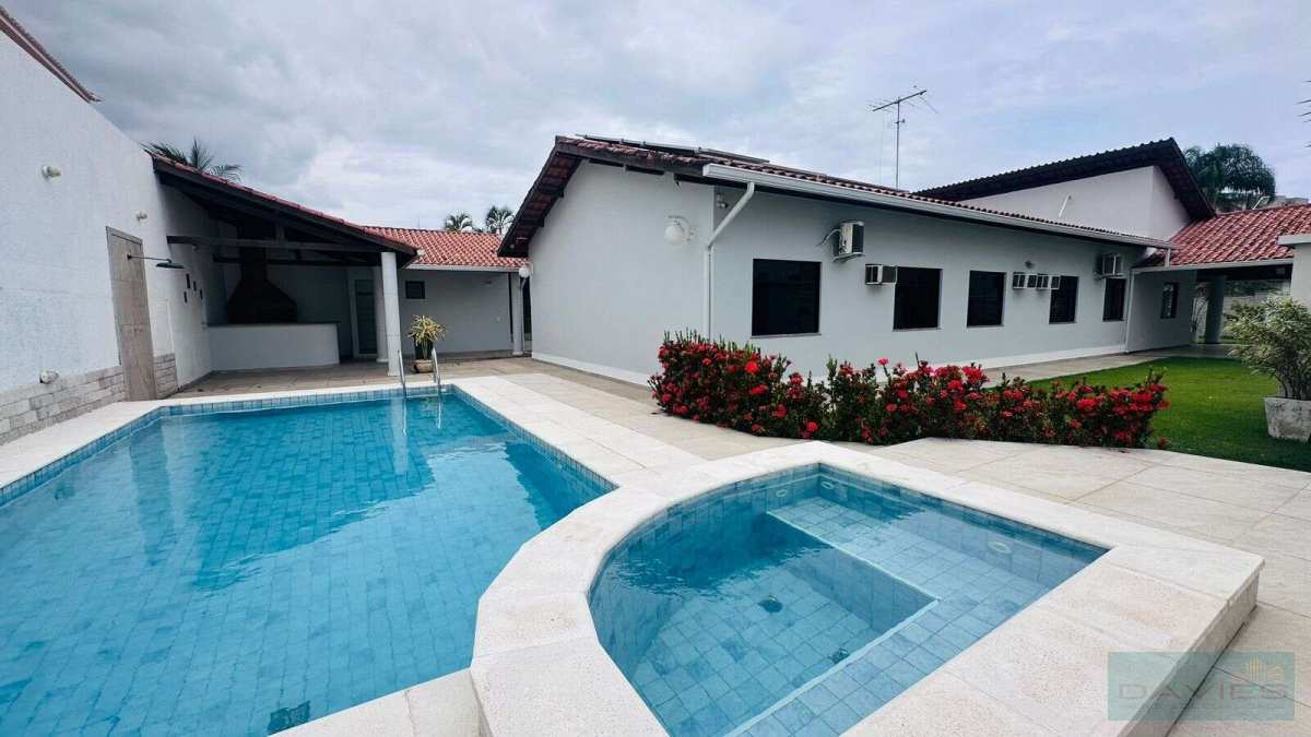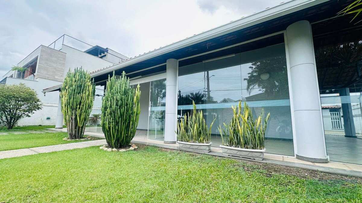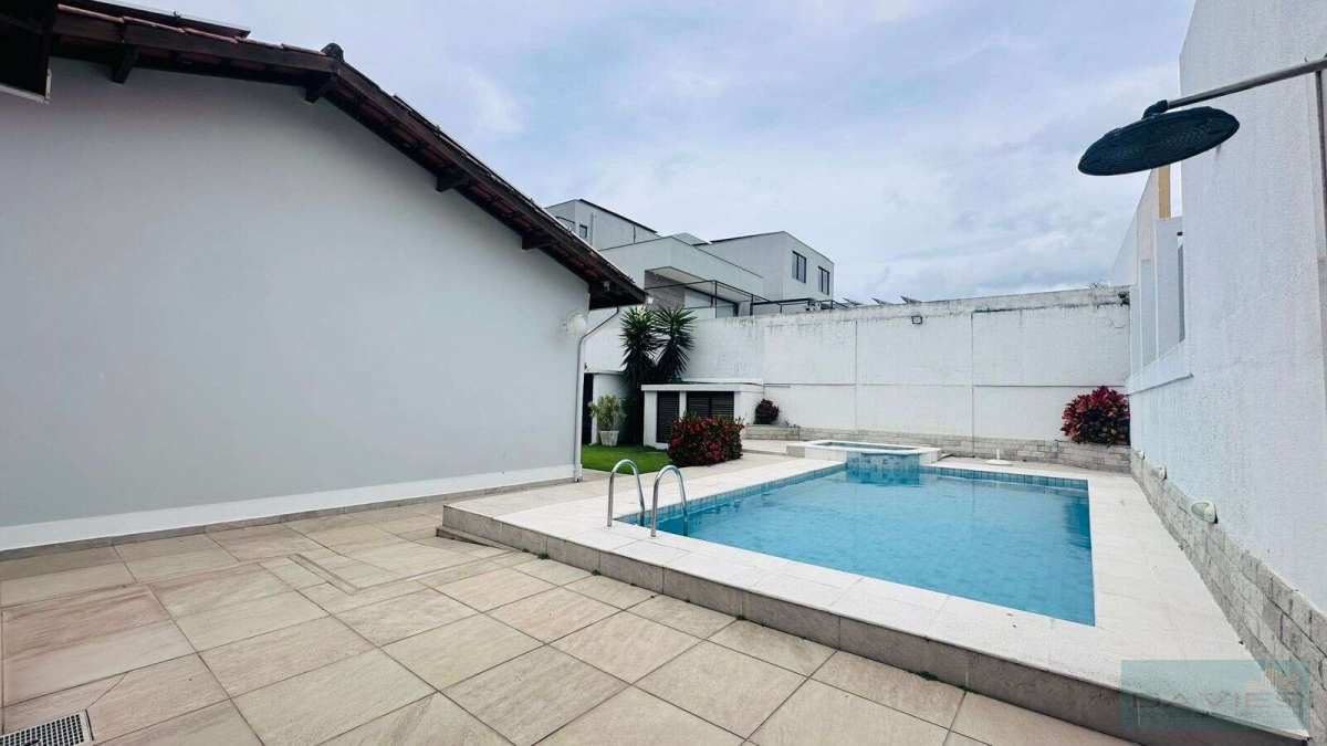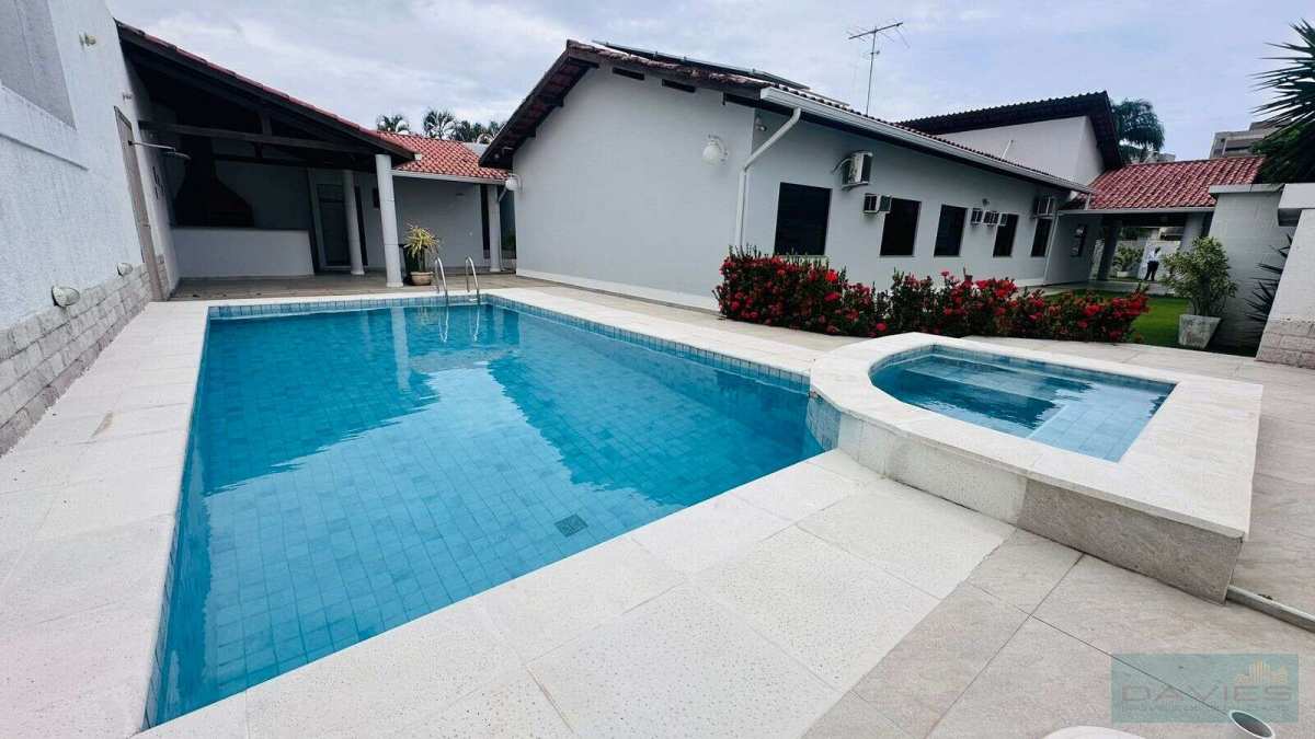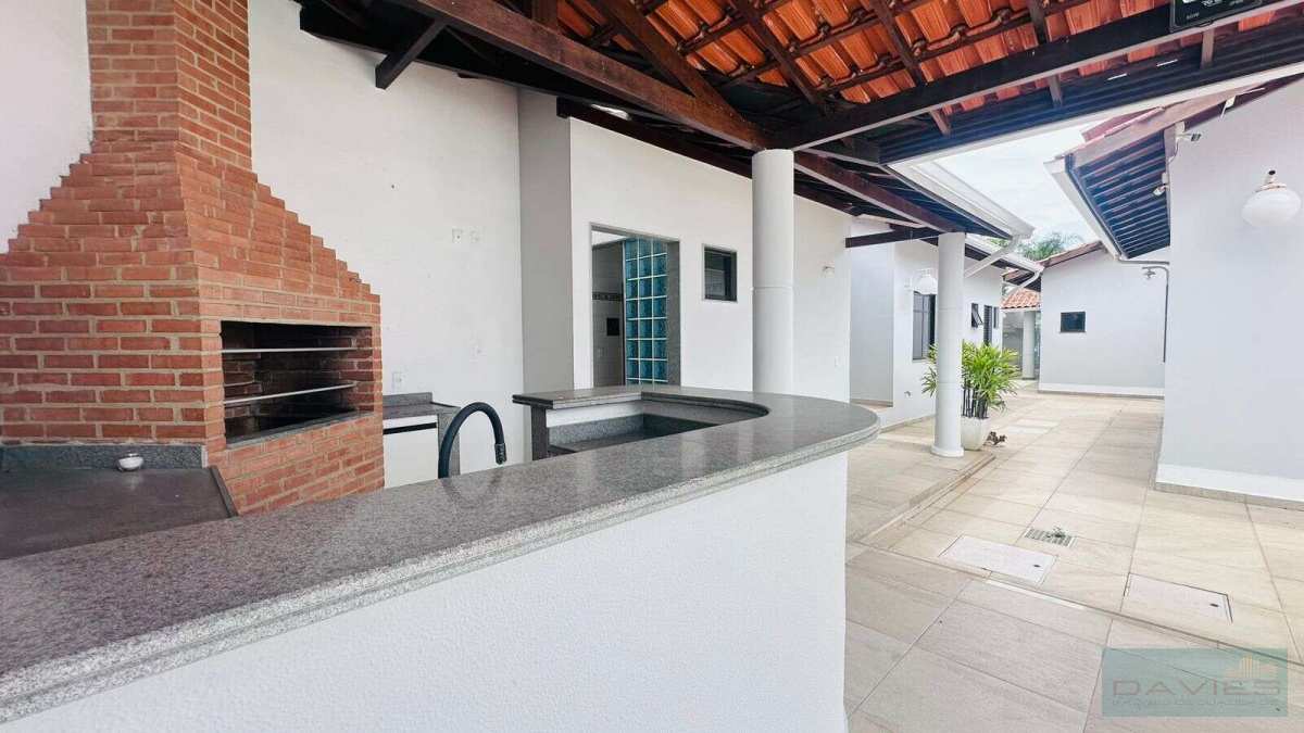 Ampla área externa com boa parte dela composta de grama natural, jardim, árvores frutíferas, piscina com hidromassagem, sauna, ducha e espaço gourmet com bancada e churrasqueira.